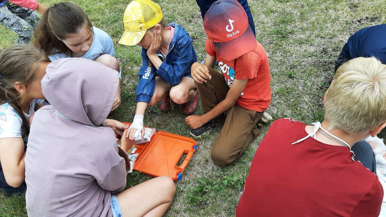 Уборка территории, ориентирование на местности, оказание первая помощи при порезе, минералы и полезные ископаемые, викторина «Туристическая», минитурслёт "Романтики", изготовление эмблем турслёта.